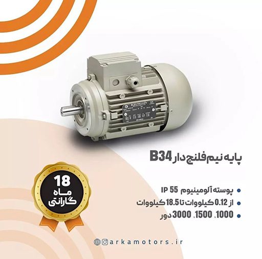 الکتروموتور صنعتی سه فاز الکتروژن پایه نیم فلنج دار B34